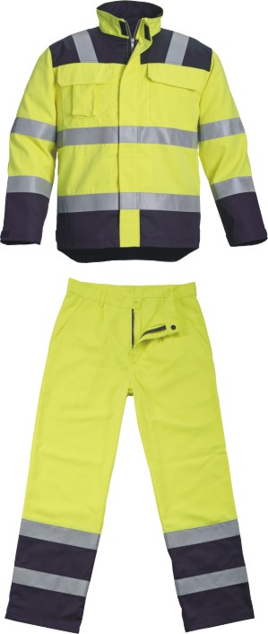 SH103 High Visibility Two-tone FR & Antistatic JacketYellow: 310gsm FR & antistatic fabric 59% cotton40% polyester 1% carbonNavy: 300gsm FR & antistatic fabric 75% cotton24% polyester 1% carbonMetal zipper in front + FR velcro closureAdjustable bottom and cuffs by velcroCertified flame retardant reflective tapes, FR thread, FR velcroMeet EN471, EN11611-1, EN11612, EN1149-3Sizes: S-3XL